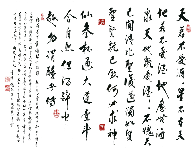天若不愛酒。 酒星不在天。 地若不愛酒。 地應無酒泉。 天地既愛酒。 愛酒不愧天。